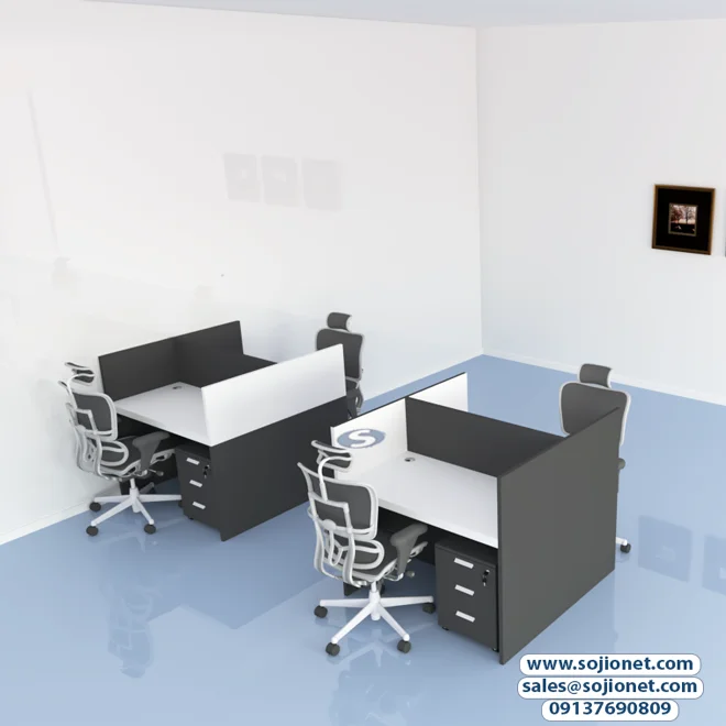 The Side-by-Side Two Seater Workstation Table is cleverly designed to accommodate four users, with two people seated on each side, directly opposite one another. This seating layout promotes teamwork while maintaining individual space, making it ideal for modern office setups where both interaction and privacy are valued.